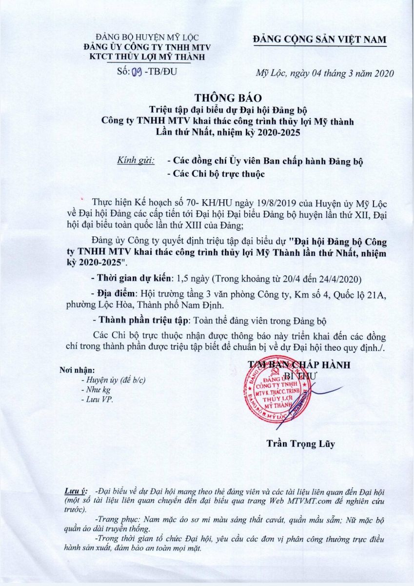 • THÔNG BÁO TRIỆU TẬP ĐẠI BIỂU DỰ ĐẠI HỘI ĐẢNG BỘ CÔNG TY