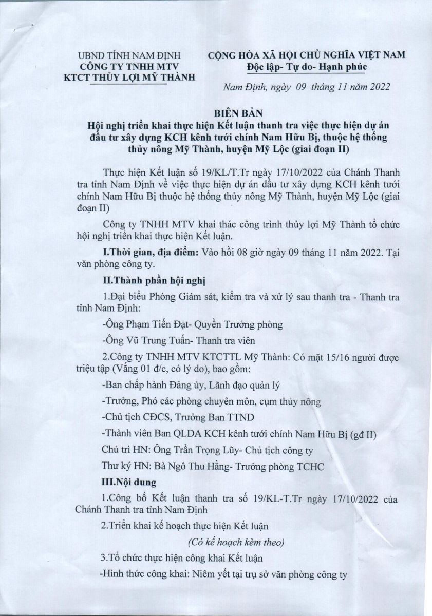 - Quyết định về việc phê duyệt danh mục, kế hoạch sửa chữa thường xuyên công trình thuỷ lợi năm 2026 của Công ty TNHH MTV KTCTTL Mỹ Thành