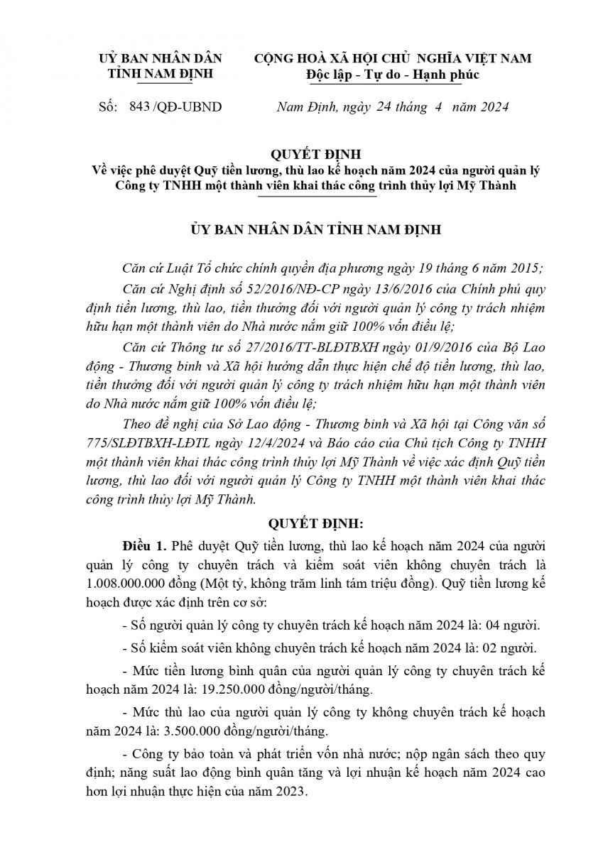 Quyết định của UBND Tỉnh Nam Định về việc giao kế hoạch năm 2025 cho Công ty 01-07-2025