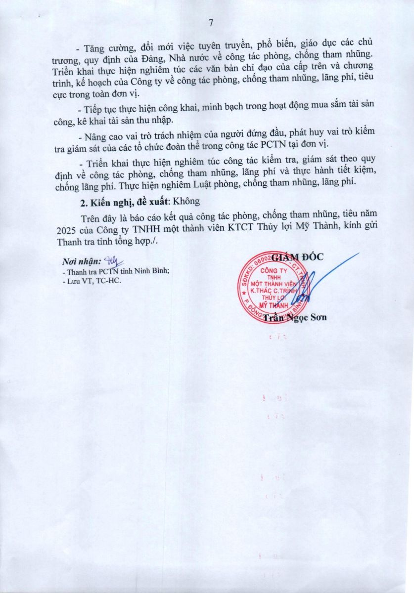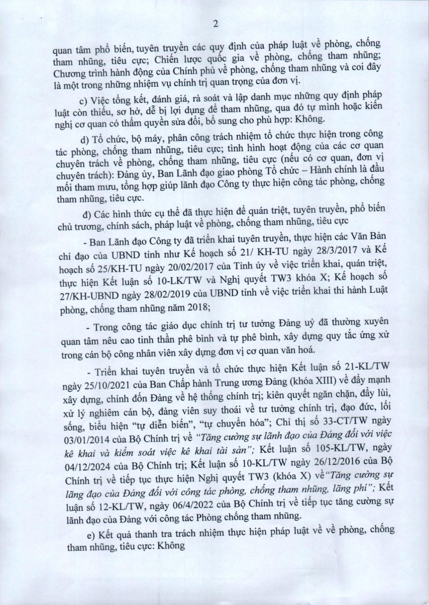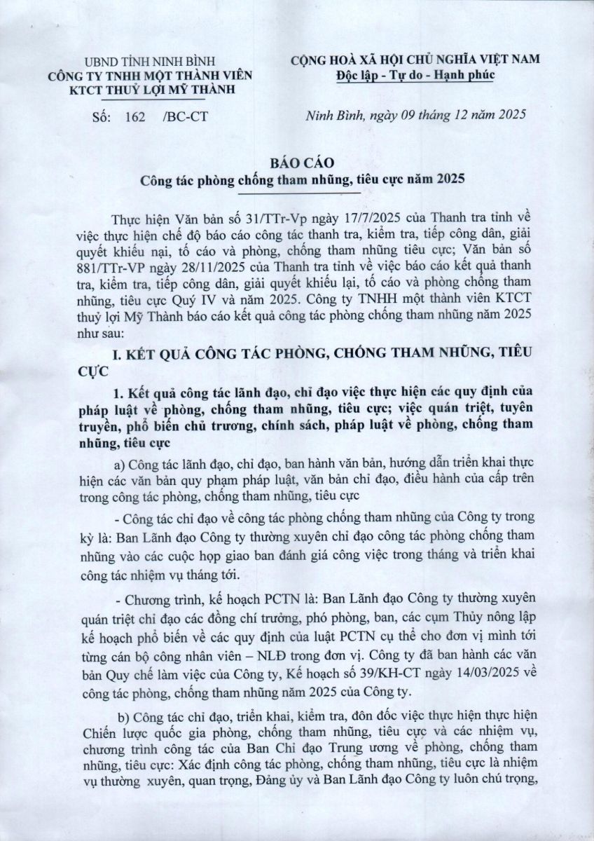 - Báo cáo công tác phòng chống tham nhũng, tiêu cực năm 2025
