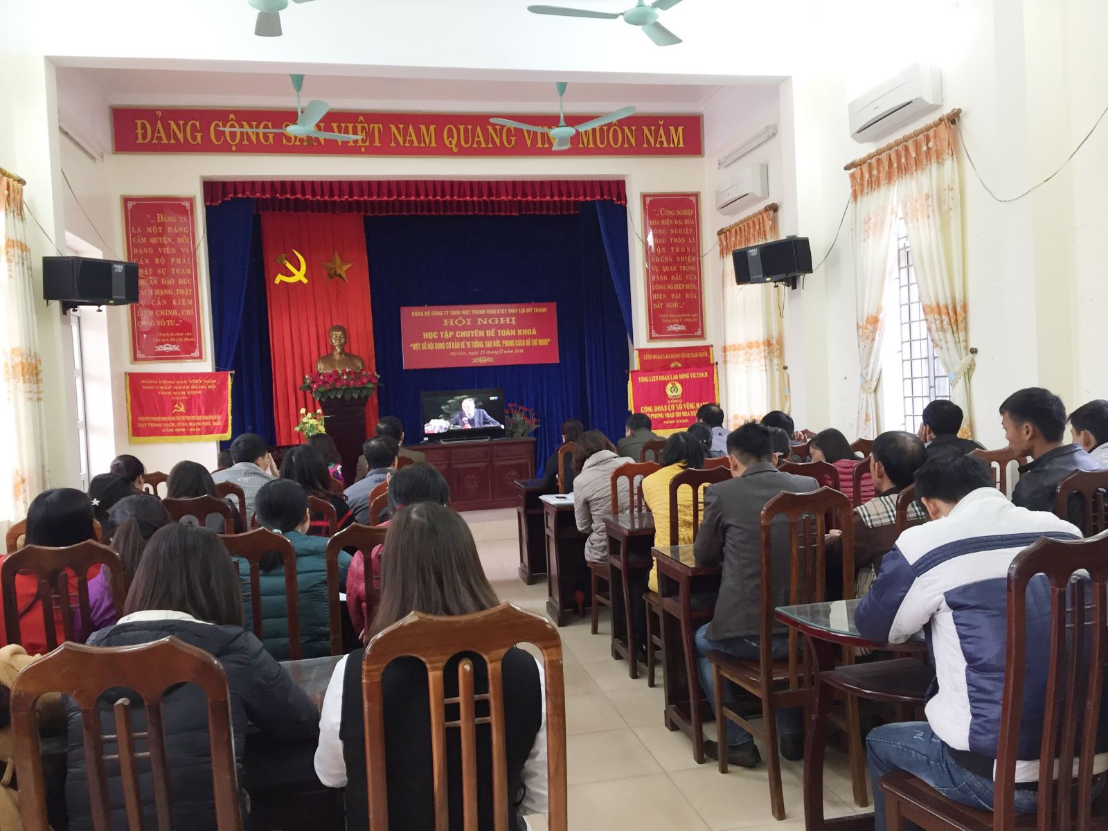 Thực hiện Chỉ thị số 05 –CT/BCT ngày 15/5/2016 của Bộ chính trị về việc “Đẩy mạnh học tập và làm theo tư tưởng, đạo đức, phong cách Hồ Chí Minh”, Đảng bộ Công ty TNHH một thành viên KTCT thủy lợi Mỹ Thành đã tổ chức hội nghị học tập chuyên đề toàn khóa “Một số nội dung cơ bản về tư tưởng, đạo đức, phong cách Hồ Chí Minh” tại công ty bằng hình thức truyền hình trực tiếp trên sóng Đài phát thanh – Truyền hình tỉnh Nam Định.