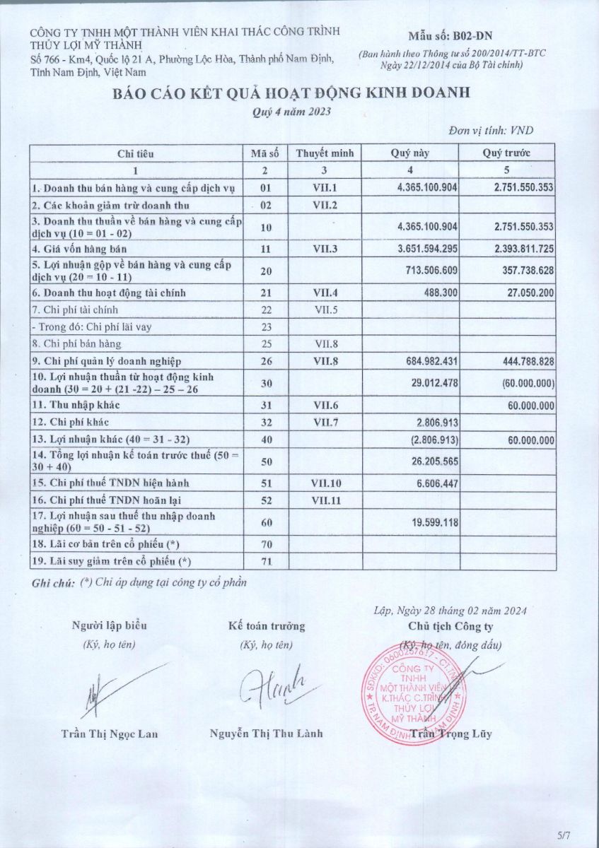 • Báo cáo kết quả hoạt động kinh doanh Quý 4 năm 2023