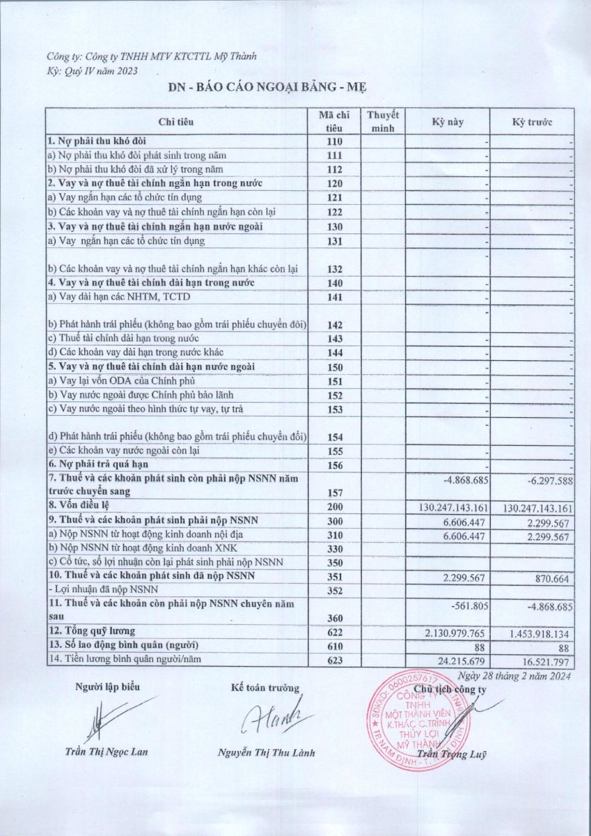 CÔNG TY TNHH MỘT THÀNH VIÊN KTCT THUỶ LỢI MỸ THÀNH