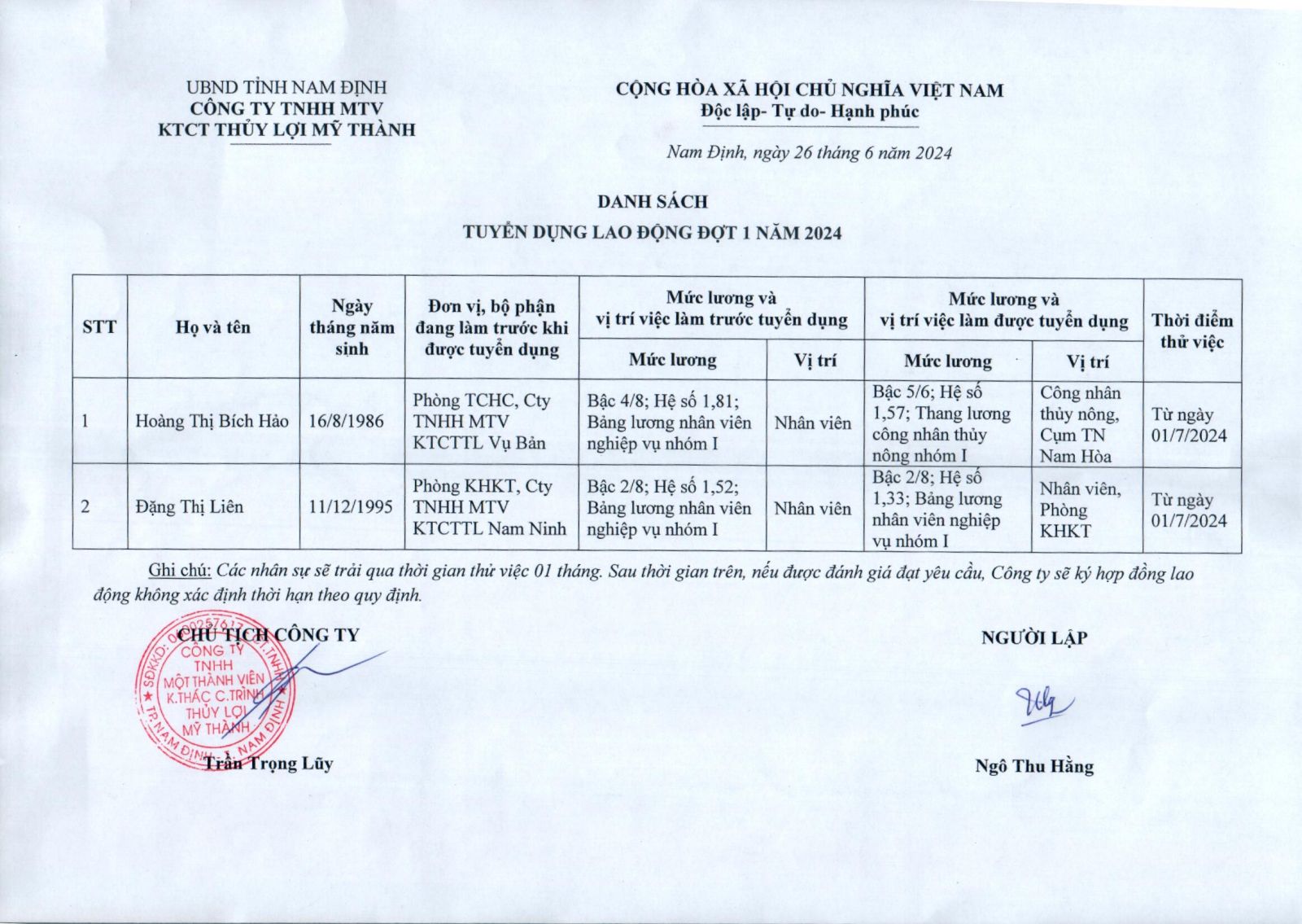 - Quyết định về việc bổ nhiệm lại Trưởng phòng Quản lý nước & Công trình