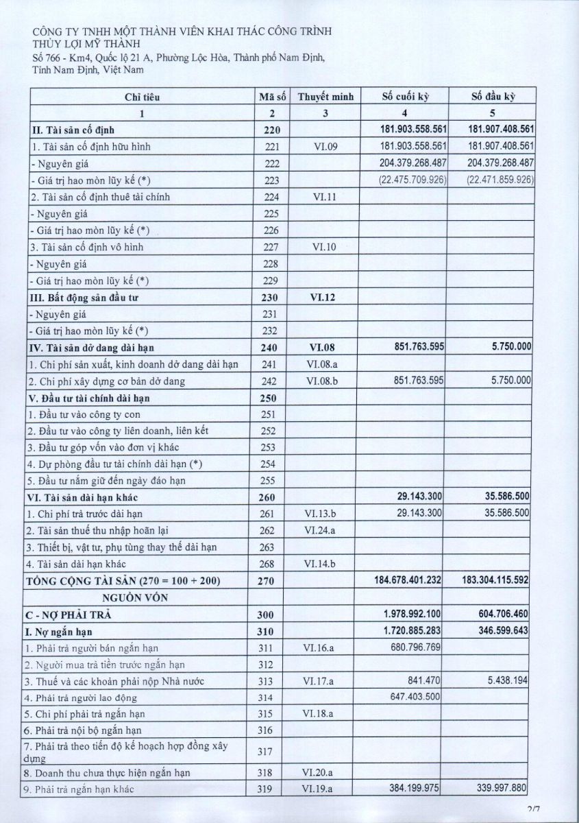 - Quyết định về việc phê duyệt danh mục, kế hoạch sửa chữa thường xuyên công trình thuỷ lợi năm 2026 của Công ty TNHH MTV KTCTTL Mỹ Thành