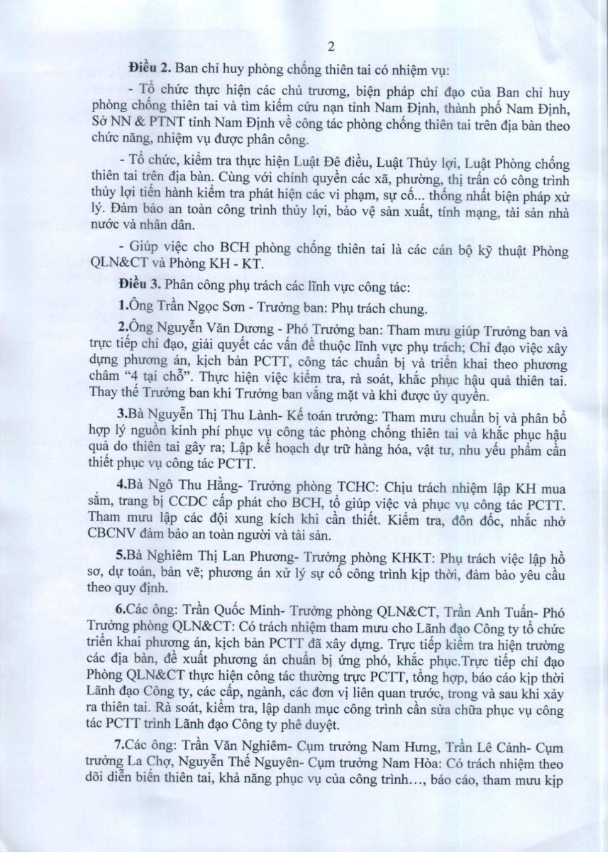 - Quyết định về việc thành lập Ban chỉ huy phòng chống thiên tai năm 2026