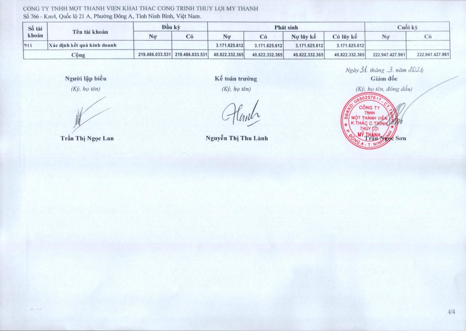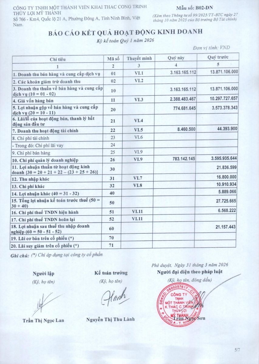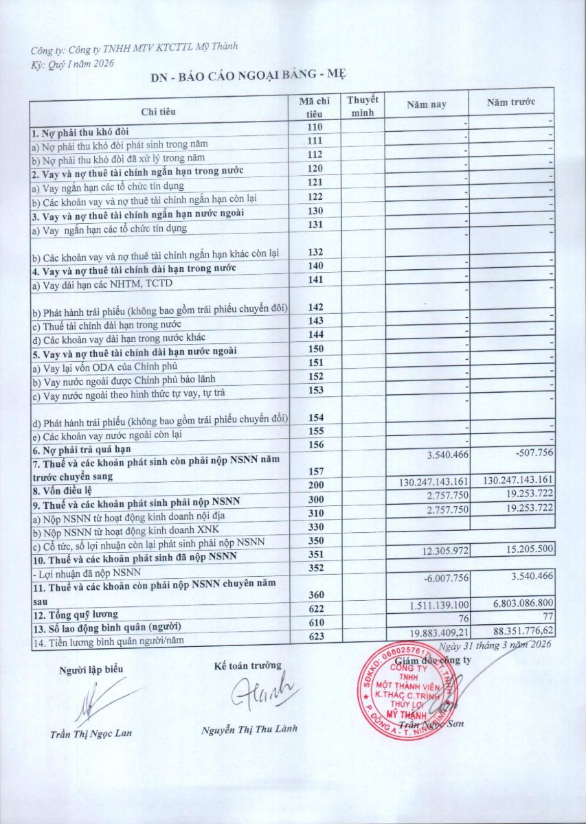 - Quyết định về việc phê duyệt danh mục, kế hoạch sửa chữa thường xuyên công trình thuỷ lợi năm 2026 của Công ty TNHH MTV KTCTTL Mỹ Thành