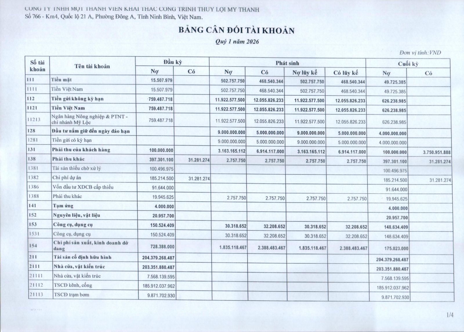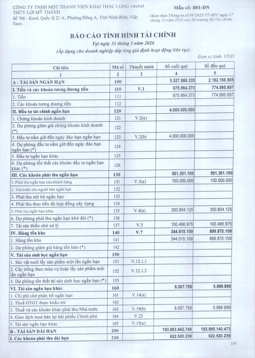 - Báo cáo tài chính quý I năm 2026